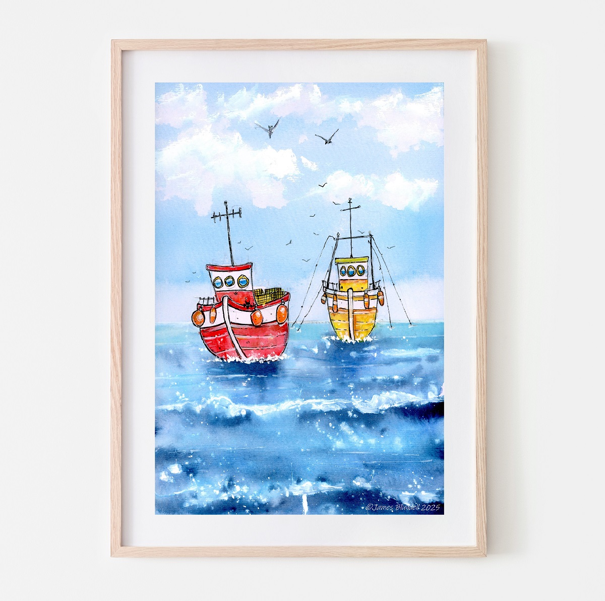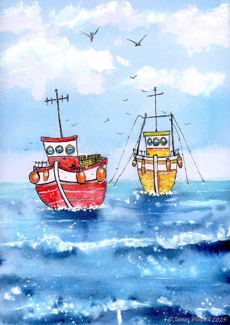 A4 Unframed print of my original watercolour & pen artwork “Bobbing Along”.