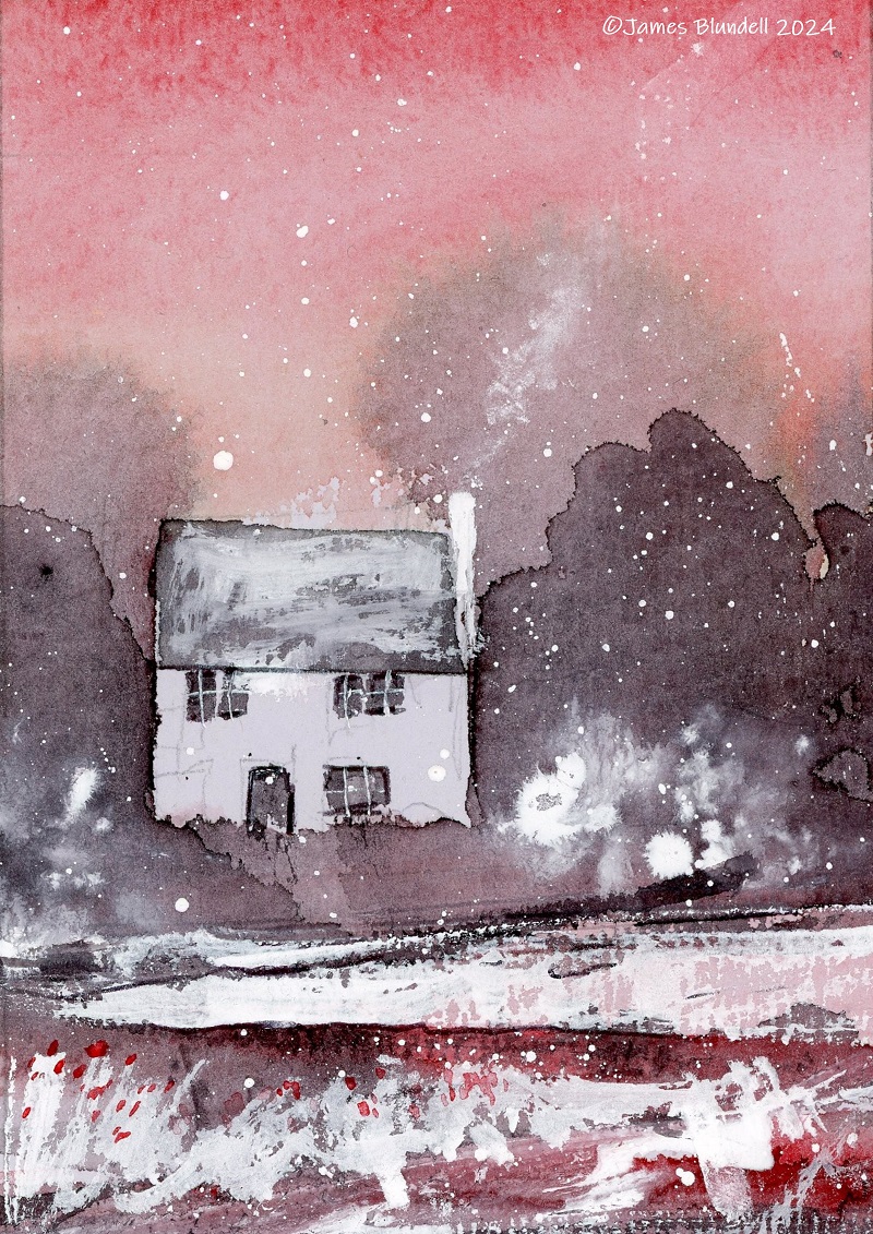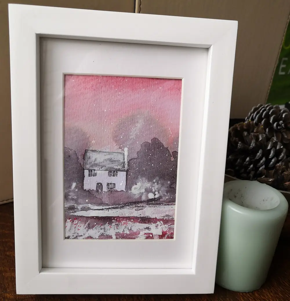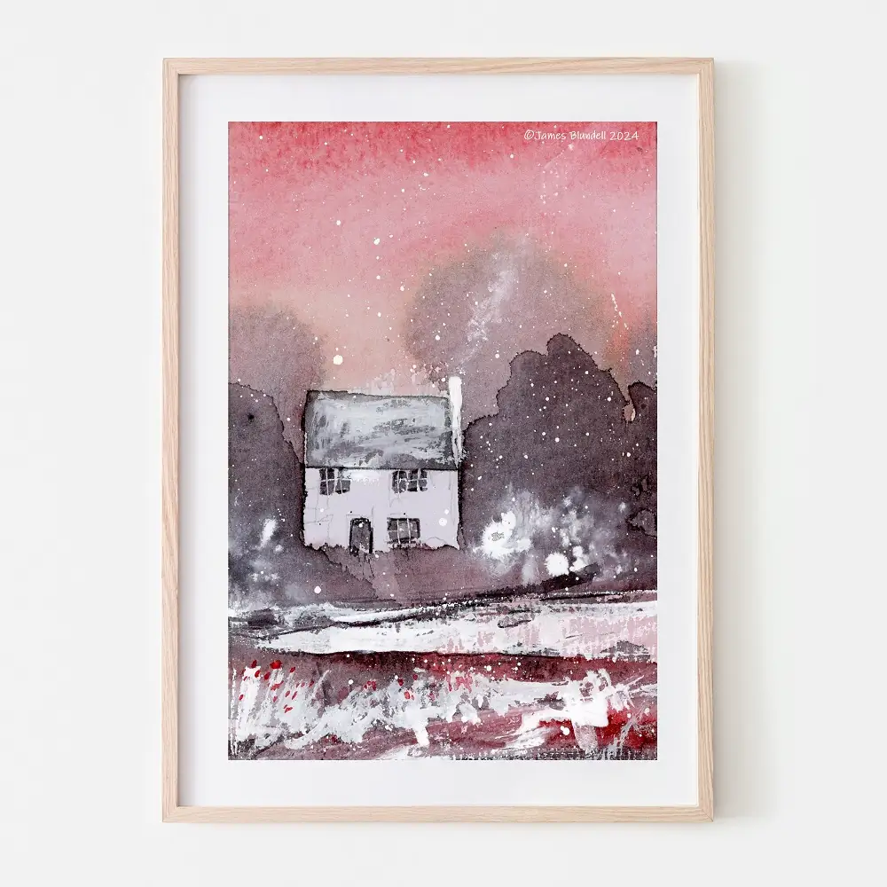 “Homely Hearth” Watercolour Winter Scene – Art Print