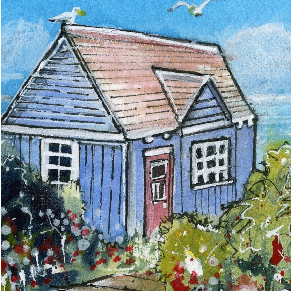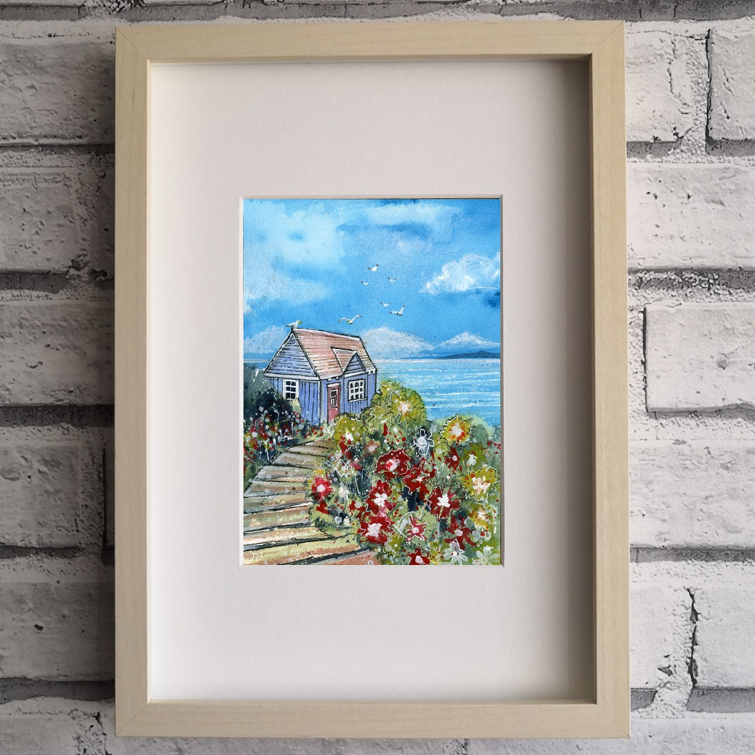 Watercolour Artwork size 12 x 17cm. Birch effect frame -Framed outer size 23 x 32cm.