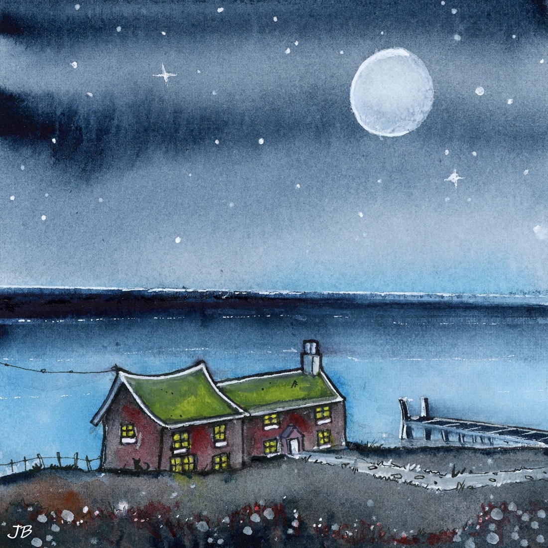 “Watchful Moon” – Original Watercolour & Pen